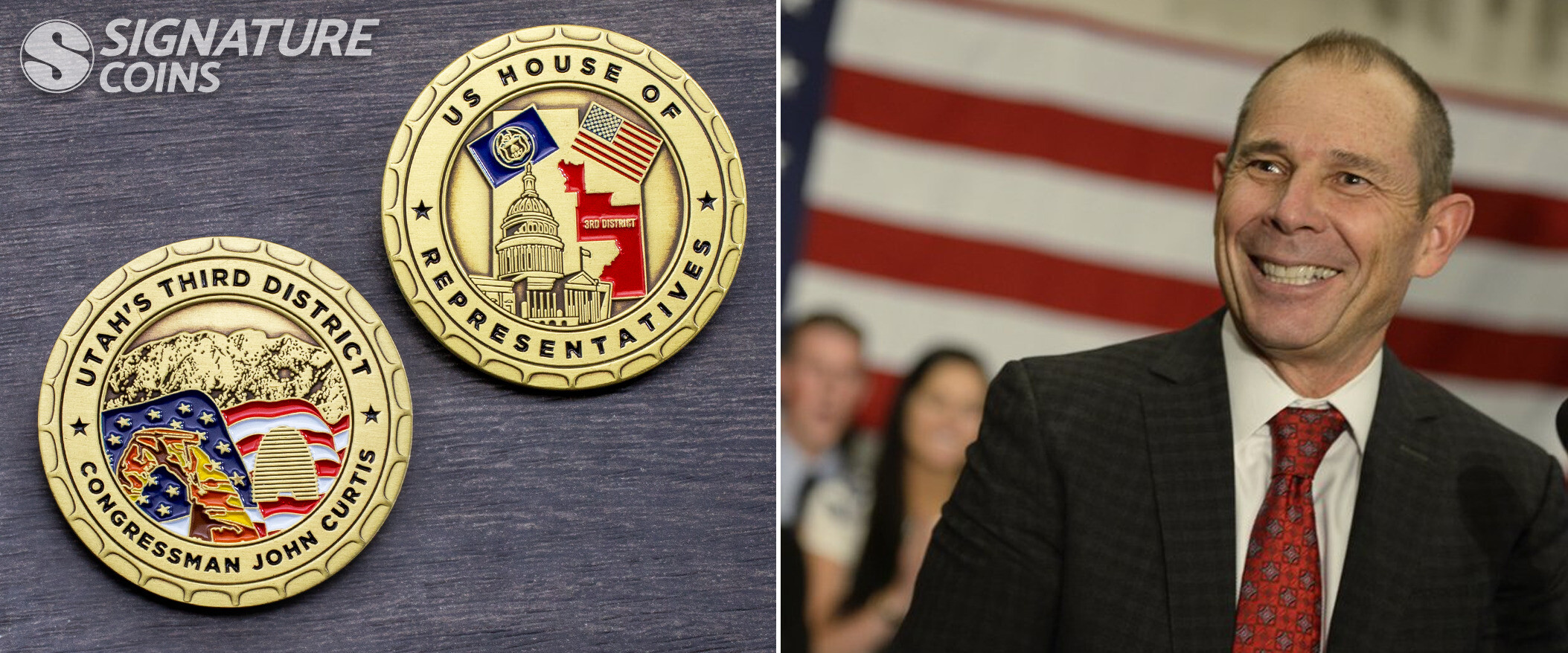 The president isn’t the only member of the U.S. government that has a personal challenge coin. We designed this coin for Congressman John Curtis. Just like any other personal challenge coin, Congressman Curtis trades these challenge coins with other politicians, supporters and members of the armed forces as a symbol of respect and honor.