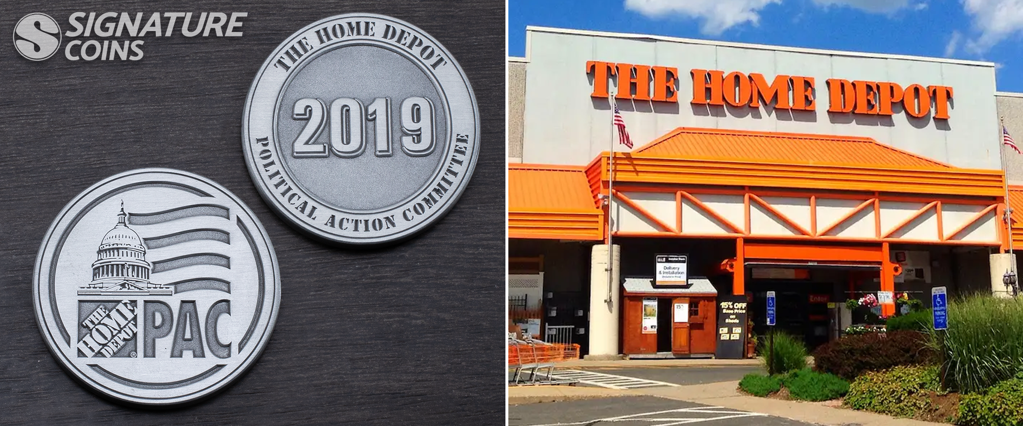 We’ve created several coins for the Home Depot over the years, but this one stands out from the rest. Usually, the Home Depot orders coins for staff members as a morale booster or commemorative item, and these are no different in that regard. However, instead of being made for employees working at different store branches, they were created for the Home Depot’s Political Action Committee.