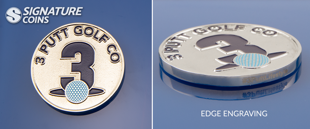 If you’re familiar with the game of golf, then you’ve probably seen a few different types of golf ball markers. Out on the greens, you’re likely going to see them clipped to the brims of hats, attached to divot tools and even magnetically attached to the straps of golf gloves. Tournament sponsors, country clubs and groups of friends contact vendors and have custom ball markers made with or without magnetic backings in varying degrees of quality, but what people don’t see too often is a custom challenge coin with a ball marker insert.
