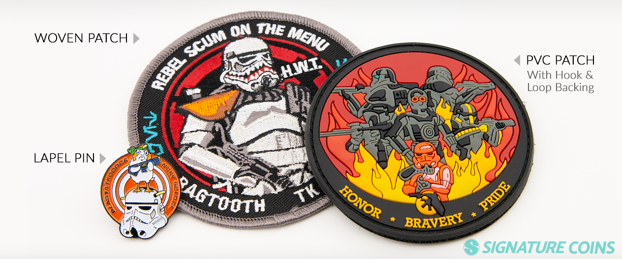 We may be a custom coin company, but that doesn’t stop us from helping the customers looking for more than just challenge coins. Our team makes custom pins and patches, cufflinks and even belt buckles. We bring the same quality and customer service to all of our other products, so why stop at custom coins? After carefully crafting the perfect design with our art team, members of the 501st like to add some variety to what they offer at events and fundraiser by ordering things like these patches and pins. It’s easier than having to start over from scratch with another company and our quality can’t be beaten!