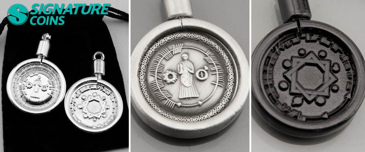 It only took a few minutes of passing the coins around the office for theories to spring up, each one getting more elaborate than the last. What we do know is that these coins are extremely small at just 1”, a size that wouldn’t really be possible if you wanted legible text on your coin, and that the contact ordered them with special coin bezels. The coin bezels will help protect them over time and make it easy to attach them to a necklace, key ring or charm bracelet. Why they’re meant to be worn, and who will be wearing them is still a mystery.