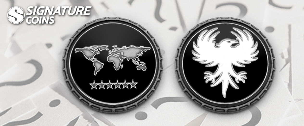 Here at Signature Coins, we make thousands upon thousands of custom coins every year, and designs without any text at all are extremely rare. The void of unanswered questions surrounding these coins is filled with our team’s speculations, some of which get as far fetched as you can imagine. But instead of trying to unravel the mystery of this coin, we figured it would be more fun to let you decide.
