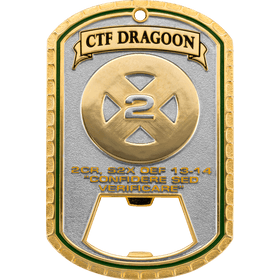 Internal bottle opener challenge coins are available in round shapes, square, dog tag shapes and any other type of custom shape you can think of. A popular way to accentuate the design of these types of designs is to include a cutout for a chain or string. Customers awarding custom challenge coins at a special event like the option for keychains because they encourage recipients to keep the coins close and use them long after the event is over.