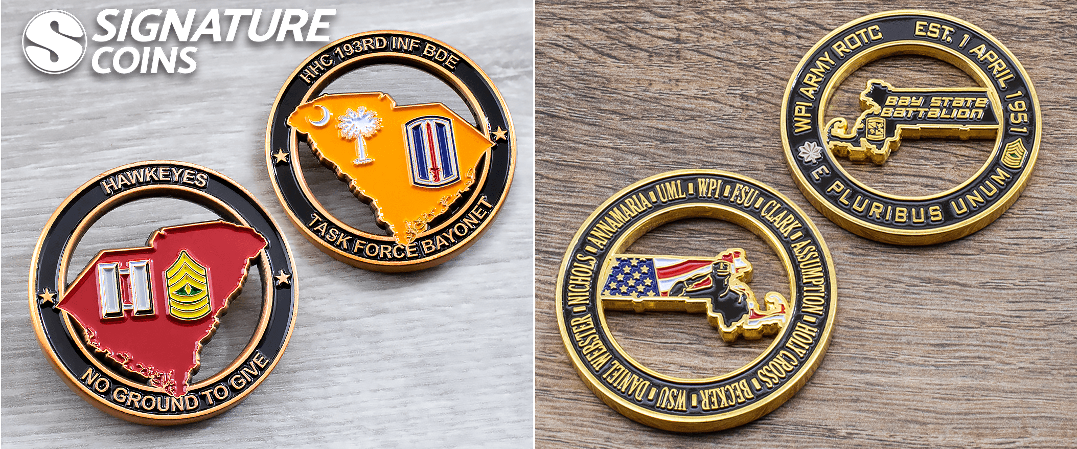 These types of challenge coins still require our production team to mold the intricate lines and borders of each state, but the overall effect is more similar to a classic challenge coin design. If you want to balance our custom shape coin options with something more similar to the classic challenge coin design, then this is the perfect option for you.