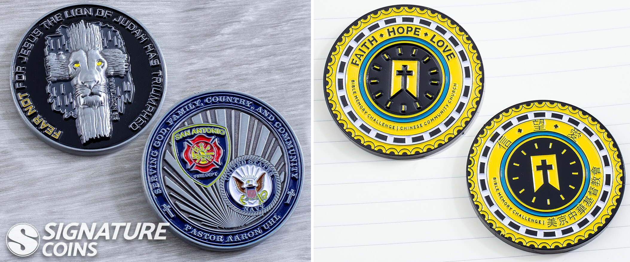 Whether you’re looking to create a custom prayer coin so people can reflect on their own or to craft a custom religious coin to celebrate an entire church community, our Signature Coins team has got you covered. No matter what circle you are a part of, challenge coins serve as a familiar symbol of trust and camaraderie.