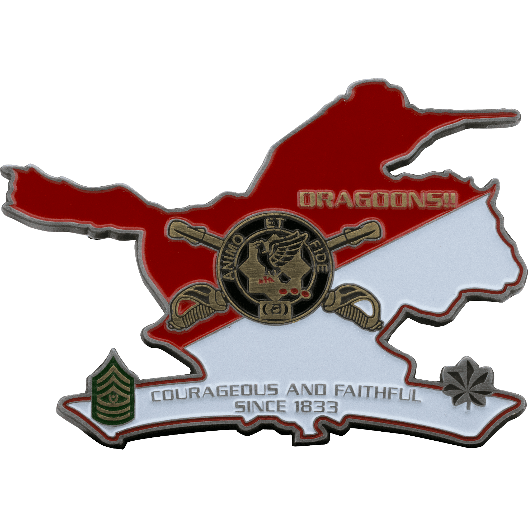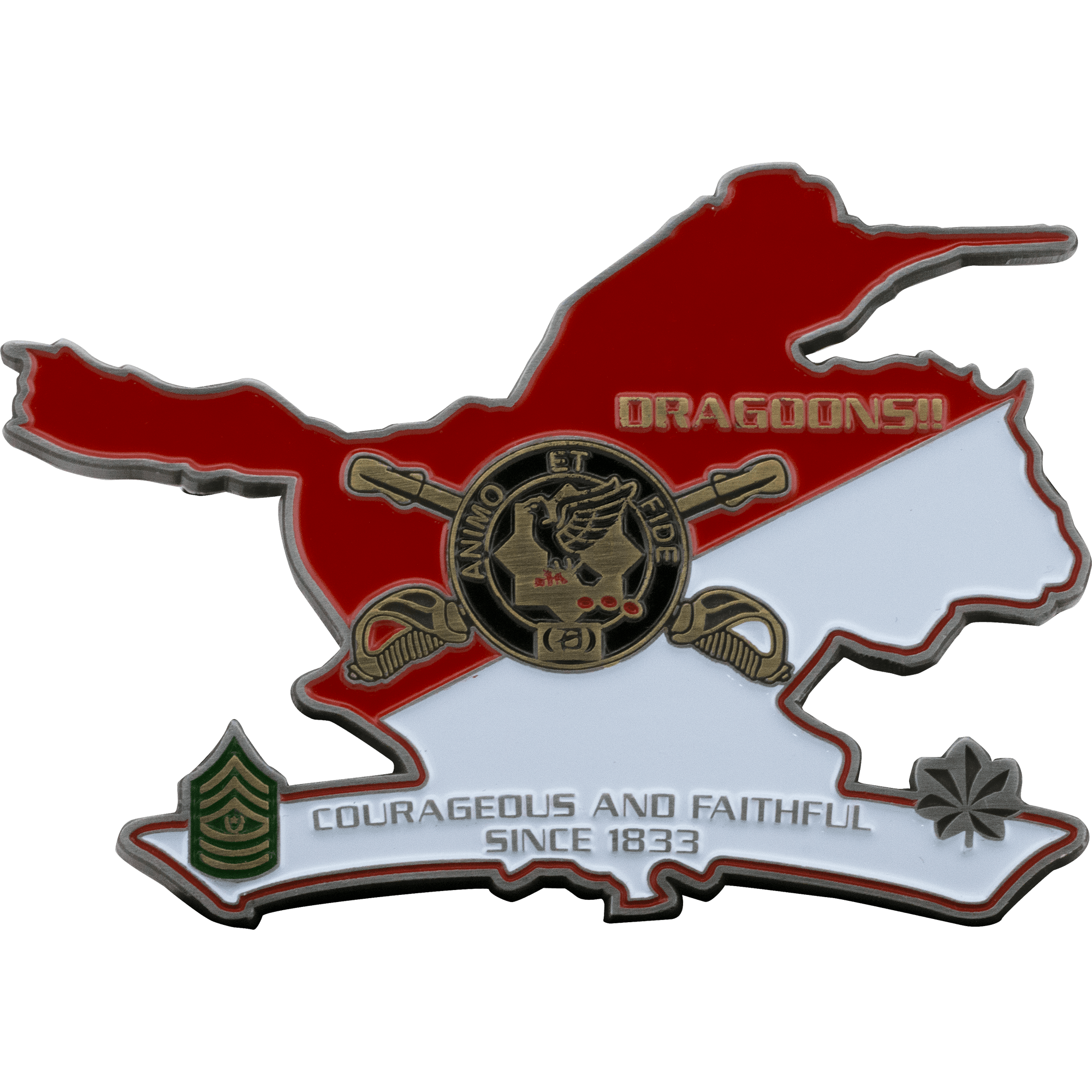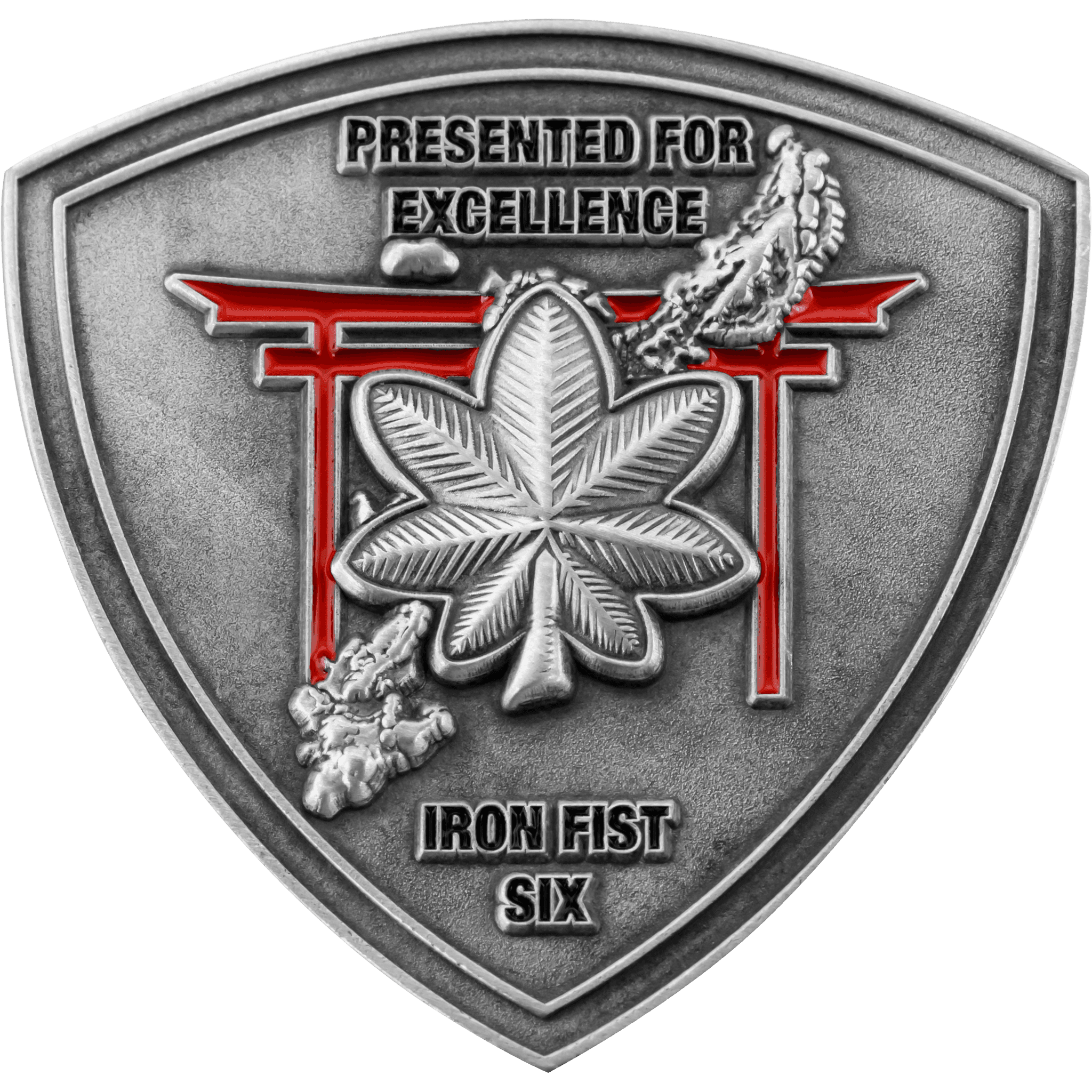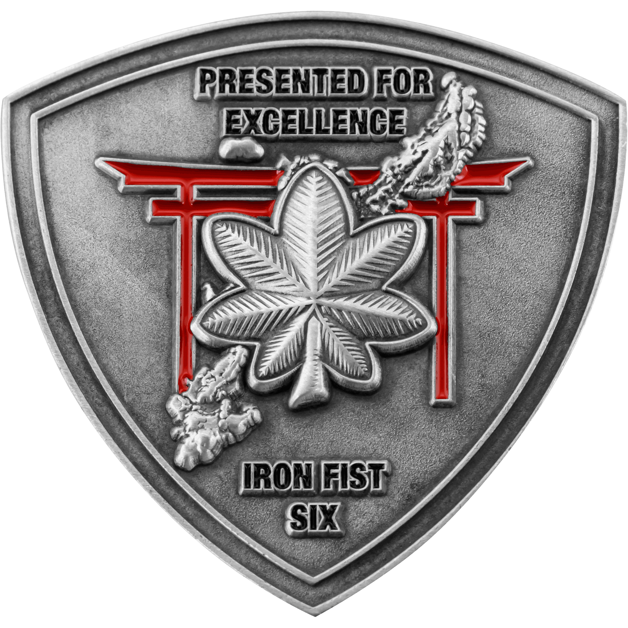 To accentuate challenge coin shapes, some of our customers choose to incorporate 3D artwork. Cut to Shape coins provide the highest level of depth and detail possible in custom coin design. While 2D challenge coins are better suited for adding intricate color schemes, mixing and matching different plating styles is a great way to change up the colors of a full 3D coin design. It’s also possible to have a design with both 3D and 2D elements, achieving the best of both worlds for your custom shaped challenge coins.