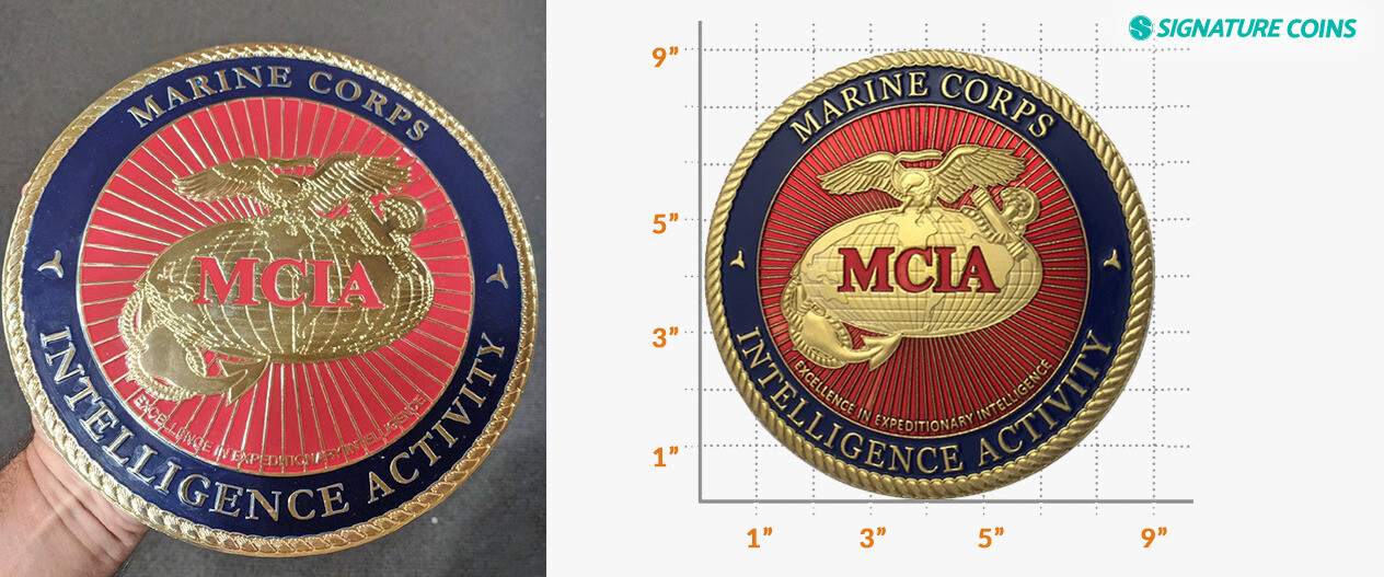 The 9” coin we made for the Marine Corps Intelligence Activity is one that’s gotten a lot of attention, but that’s mostly because of its impressive size. With so many images floating around of the coin’s front face, no one really pays attention to the fact that the back face is blank.