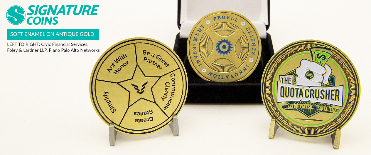 Showing gratitude to staff does not have to be that difficult. As long as you take the time to recognize hard work, then you are off to a great start. Including custom challenge coins like these ensures that there is a meaningful gift that can be awarded to recognize hard work and a company’s top performers.