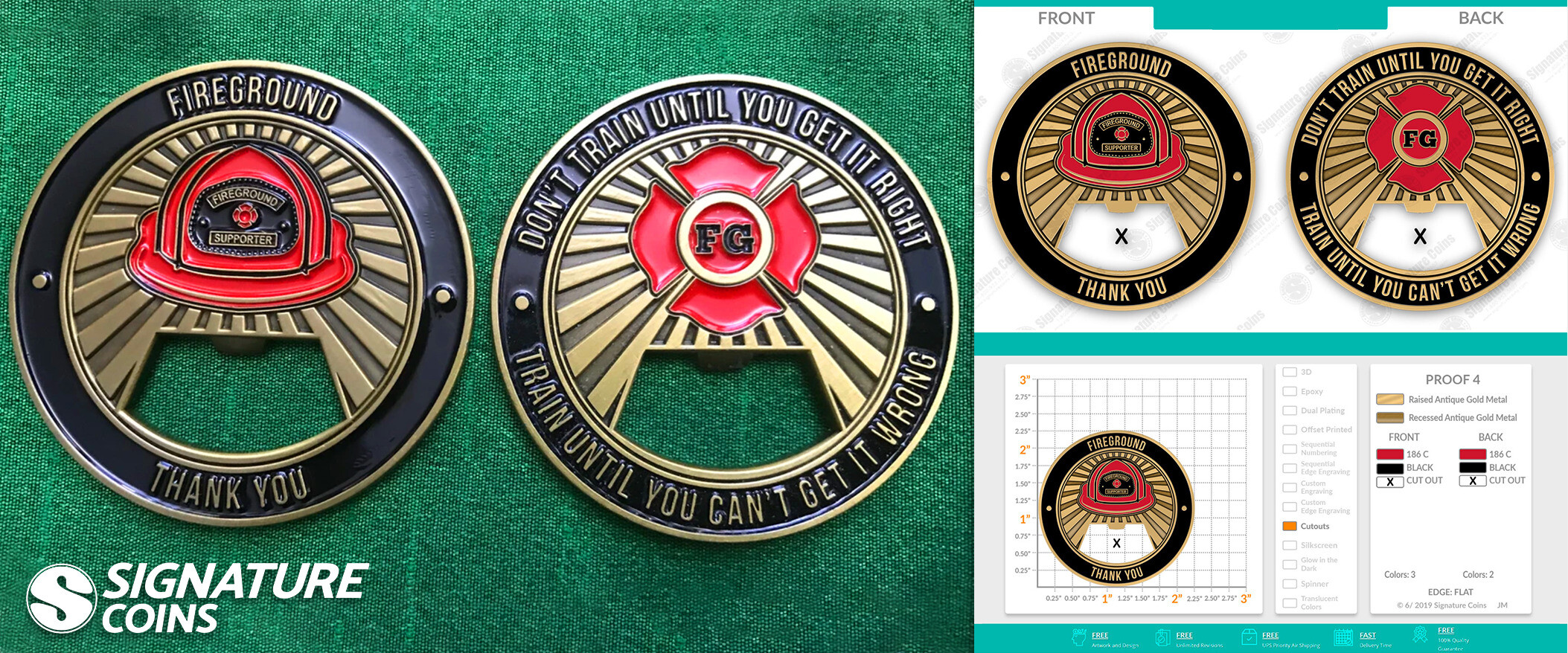 The other aspect of the coin that was very important to her was that it have a cutout for a bottle opener. Creating a functional bottle opener is one of our most popular choices for making an interactive challenge coin. “When I saw that you did bottle openers, I thought that it was actually useful and not just the coin itself,” Tuczinski explained. And so, everyone who donated to the Kickstarter at the $75 level or higher, also got their very own coin.