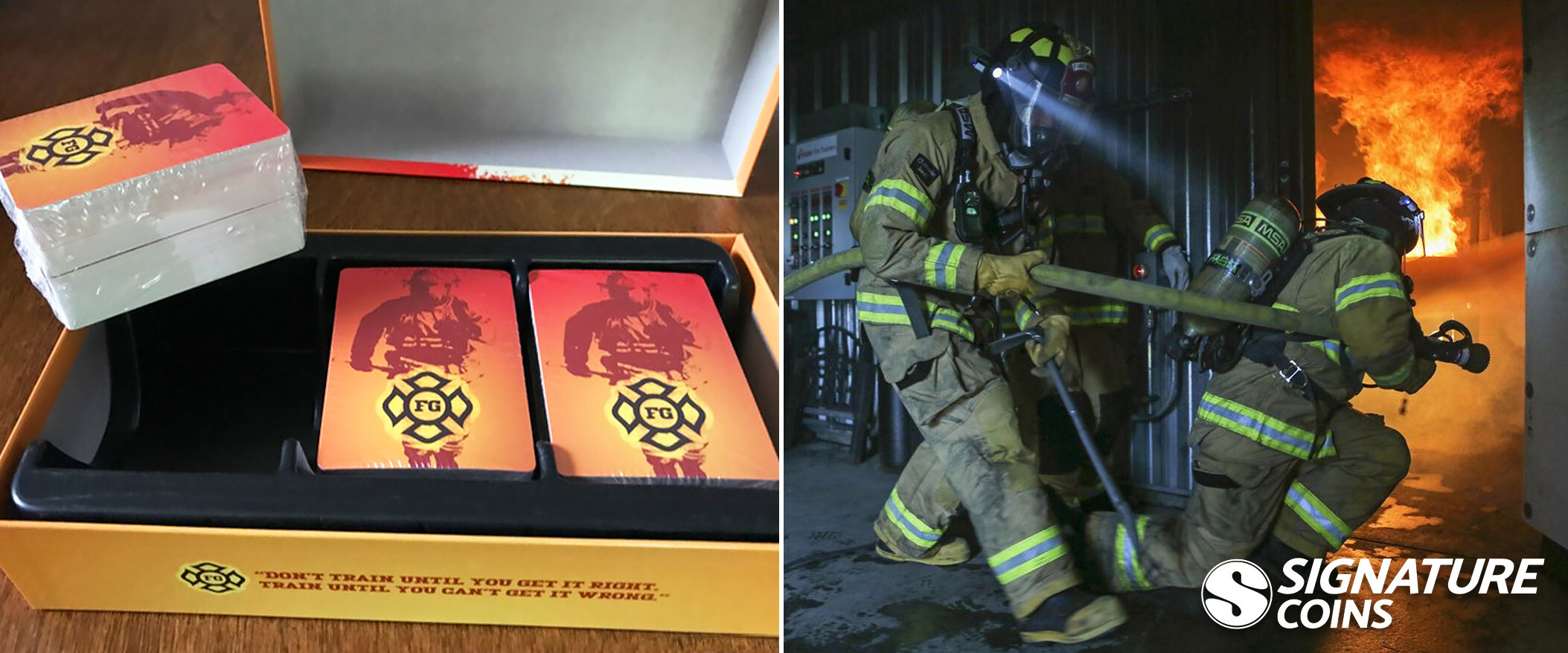 Challenge coins have been in firehouses for nearly as long as they’ve been anywhere else. Firefighter challenge coins are as much a part of the culture as sliding down poles and dalmatians. For designing the coin that would serve as one possible reward for the kickstarter campaign, Tuczinski turned to an important saying that fits the Fireground game perfectly. “I liked this motto of ‘Don’t train until you get it right, train until you can’t get it .’” That saying made up the backbone of Tuczinski’s challenge coin design.