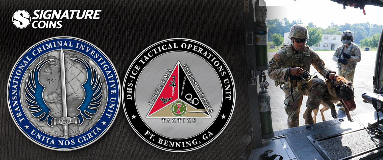In addition to training the best soldiers in the U.S. Army, Fort Benning also provides a dedicated space to the training of experienced law enforcement personnel in the use of force and advanced weapons usage. The above coin was created for the ICE Office of Training and Tactical Programs (OTTP) Firearms and Tactics Division, which makes its home in Fort Benning.