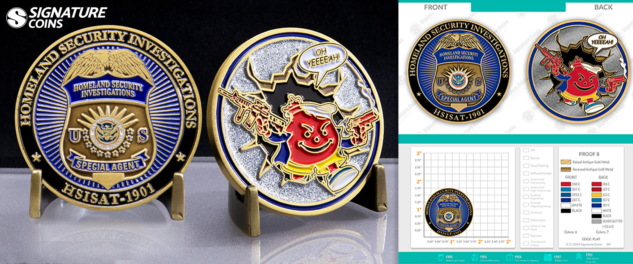 This coin commissioned by Homeland Security decided to take the fun and jolly Kool-Aid Man and ask what if he didn’t bust through the wall to bring refreshment, but to bring a lot of firepower and destruction. Seeing the Kool-Aid Man with those weapons and the determined look on his face really makes you rethink the meaning behind his trademark “Oh Yeah!”