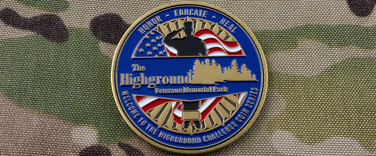 The park’s mission is to pay tribute to the dead and honor the survivors. To continue their mission and maintain the park, The Highground relies heavily on donations. Ike Rebout, the Media and Information Technology Coordinator at the park, started looking for a way to show appreciation to the organization’s supporters and donors who have helped The Highground grow so much over the years. He contacted Signature Coins with the idea of starting a challenge coin program that would spread their message and show gratitude to the incredible people making the park’s mission possible.
