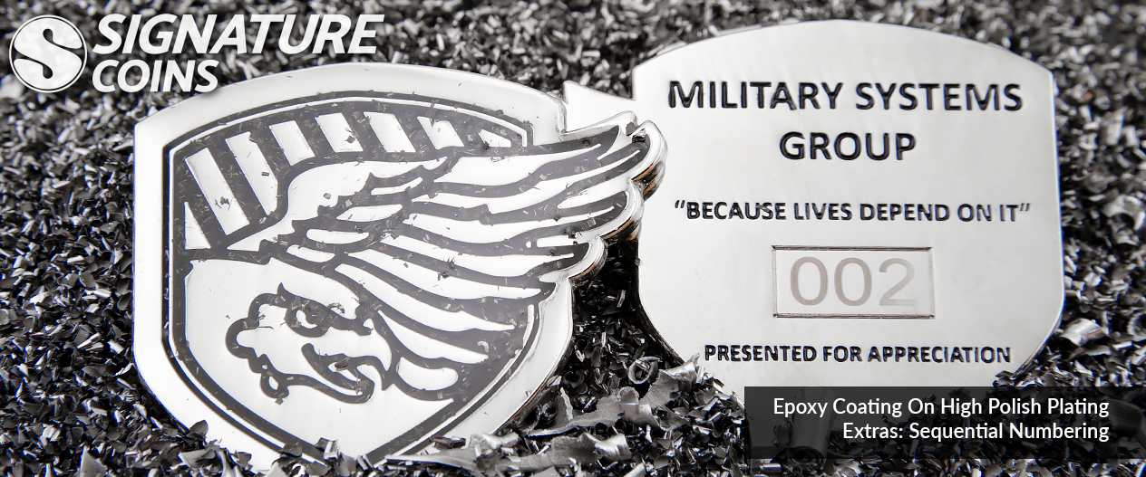 Pantaleo wanted a fairly simple and straightforward coin, not much more than the company’s logo, but it was an experience from his military background that served as the inspiration for the unique addition he wanted to make to his coins.