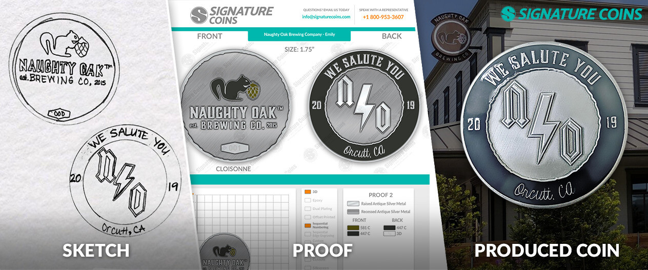If you are looking for a unique way to build camaraderie and community in your team or business, take it from the Kitts that challenge coins are an awesome place to start! Our Signature Coins team has everything you need to make your dreams for design a reality, but if you need to kick back and enjoy a cold one, you might want to check out Naughty Oak — they have got you covered there!