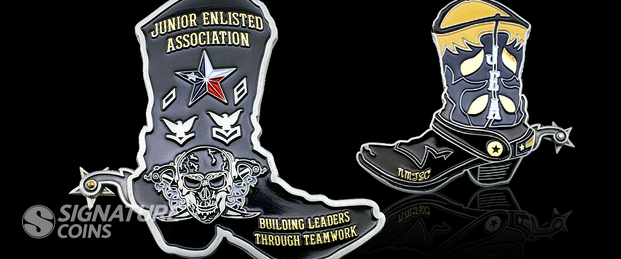 No matter what our customers are looking for, our team works carefully to bring their ideas to life. Even if you need something like a boot-shaped coin with a spinning spur or an Air Force insignia with a spinning globe and black arrowhead incorporated in the design, you can be sure our team will create the unique design you are looking for.