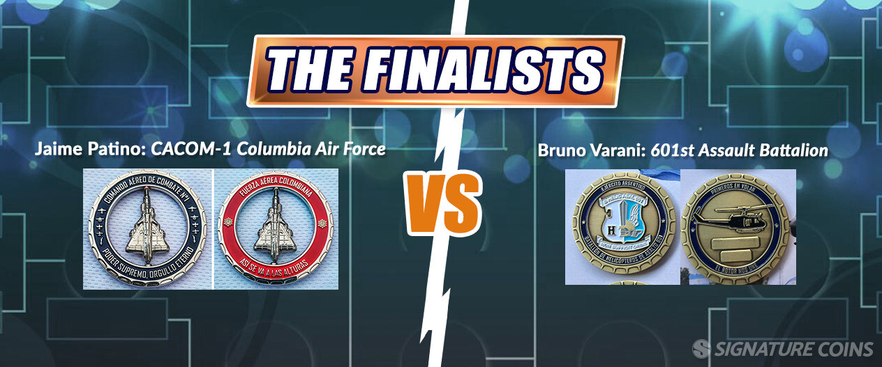 Jaime Patino’s Colombian Air Force coin usually plays to the competition, bringing in just enough votes to secure a victory. Bruno Varani may only have a third as many votes throughout the tournament, but his coin outscored Patino in the semifinals. Ultimately, the results of the final matchup in the NCCA Tournament are up to you. Keep an eye on our Facebook event page for updates and makes sure to keep voting. On Friday we will unveil the champion and recipient of 100 free challenge coins!