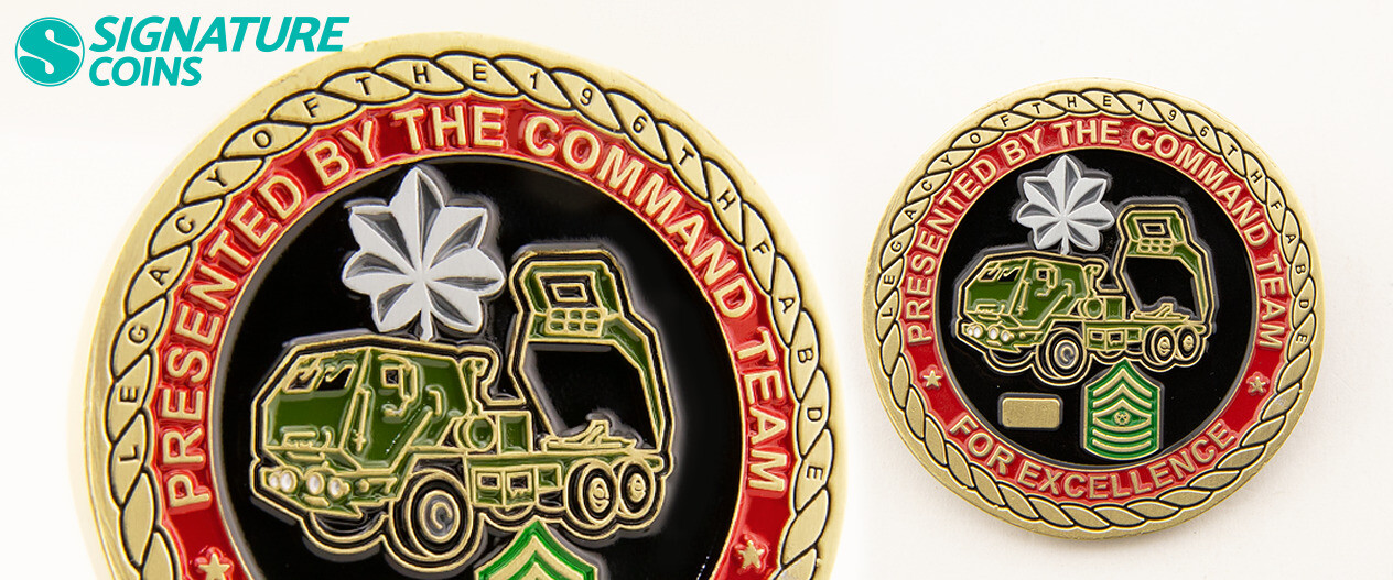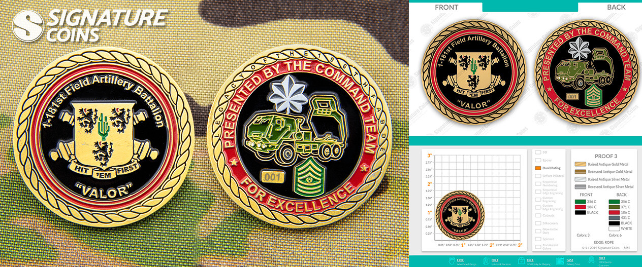 A lot of different unit coins come through our office, but this specific army artillery coin caught our attention. It doesn’t have a dynamic shape or dual purpose like the Army Birthday Ball coins we featured, nor is it a design that’s changing the game for unit coins across the military. It is, however, a perfect example of how to make a meaningful and memorable design for a specific group of soldiers with a thoughtful combination of custom options.