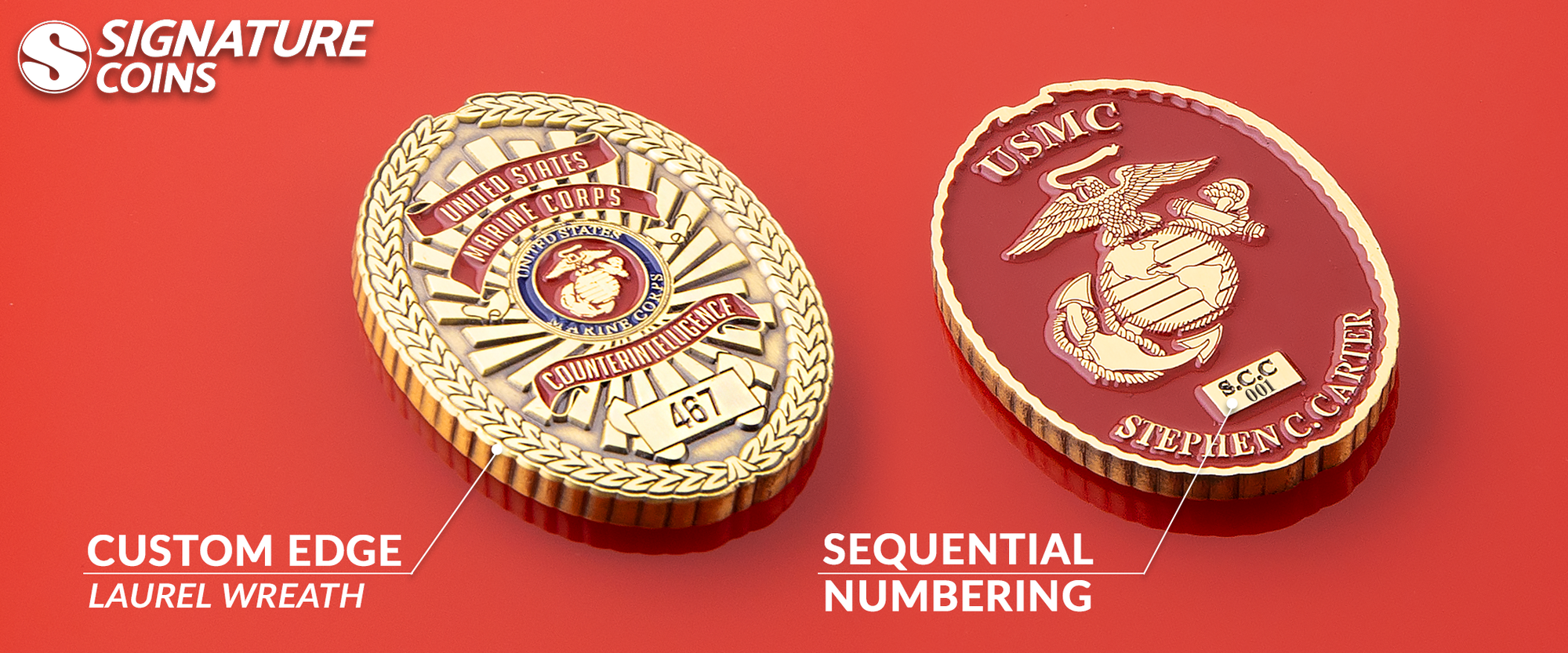 With challenge coins, size matters. We tell our customers that coins 1.5” or smaller are usually more trouble than they’re worth. It was a U.S. Marine Corps customer who was responsible for the creation of one of the largest coins we’ve created, so it seems fitting that the Marines would also request one of the smaller coins too.