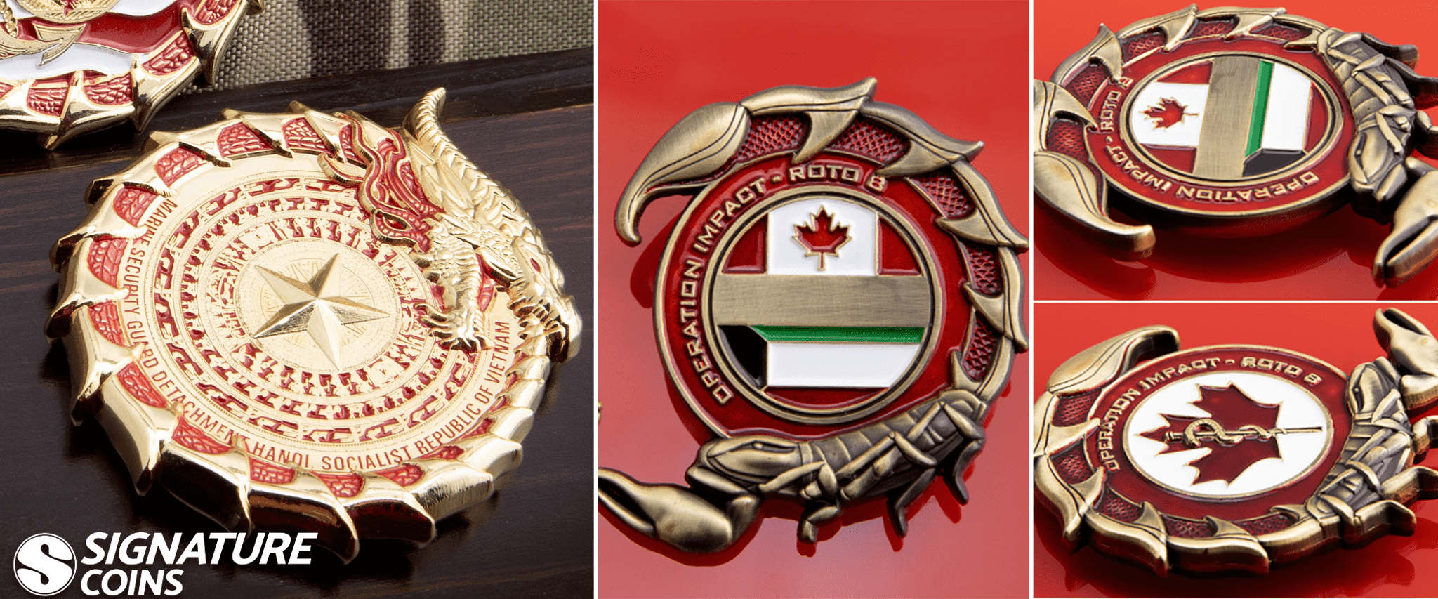 Some of our customers get really creative with their edges, like this dragon and scorpion design coin edge. Whatever you can think of, our art team can make it work.