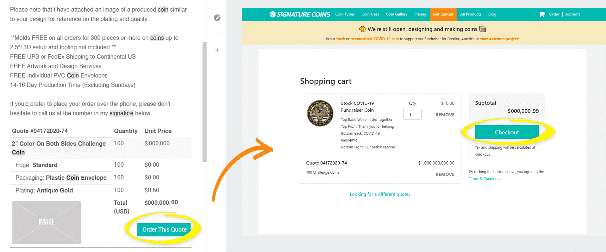 3. Locate the quote you’d like to order and click “Add to Cart.”