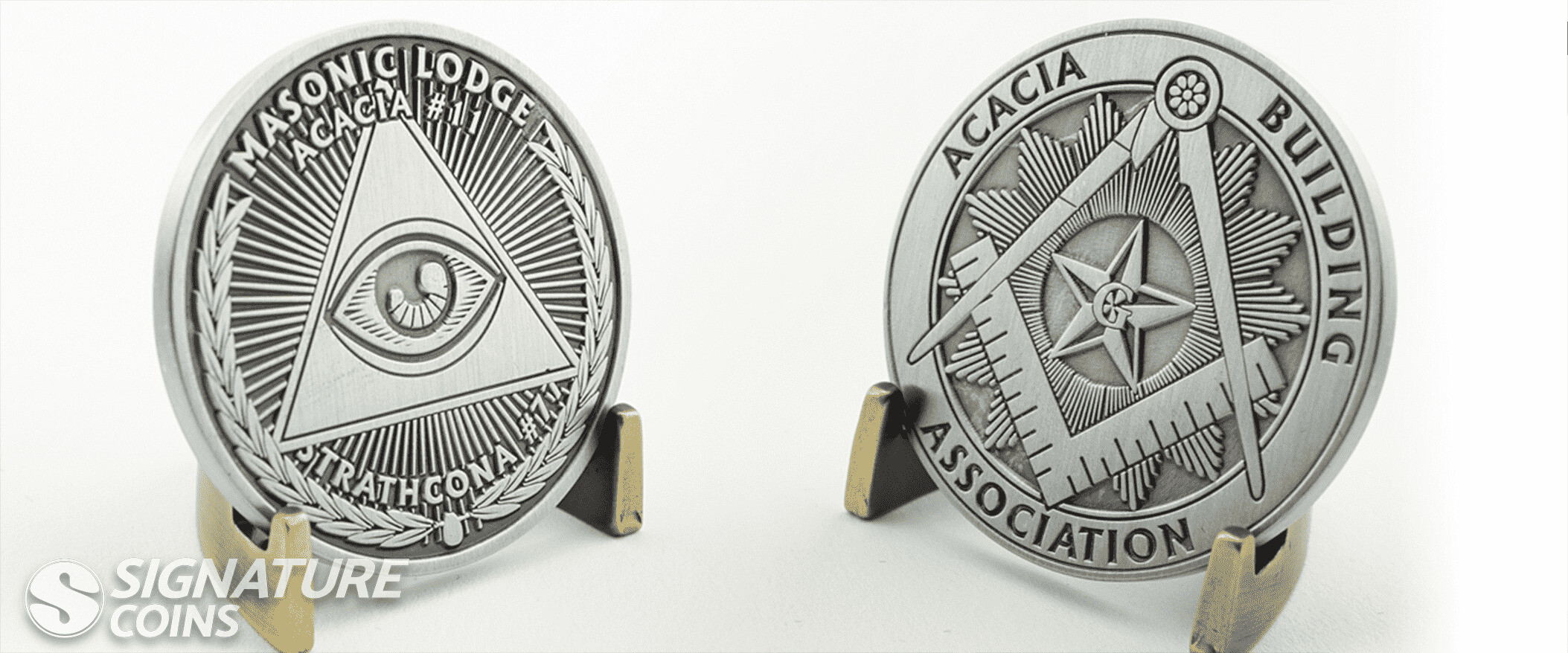 Die striking involves using a freshly made coin mold to stamp artwork into brass. Unlike soft and hard enamel, after the metal plating process, no paint is added to the custom coin.