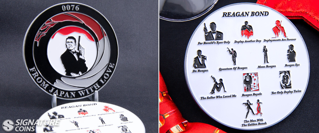 If you want to make a meaningful and memorable gift for your team, the best thing you can do is let them come up with a fun design that shows off their unique sense of humor. The crew of the USS Ronald Reagan decided that an oversized coin depicting President Reagan’s version of James Bond was just what they needed.