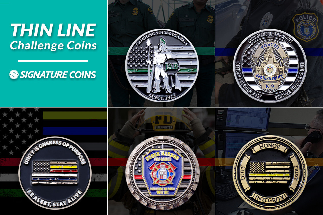 There are more colors than just blue, red and gold when it comes to the thin line American flag. There is also white for first responders, green for border patrol, and orange for search and rescue teams just to name a few. No matter what style of thin line challenge coin you need, our Signature Coins team has got you covered.