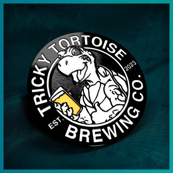 Bobby and Sharon opted for a black metal design featuring their logo and mascot - a yet to be named tortoise with a glass of Tricky Tortoise beer! The brewery is still new, and members of the Shell Club and the local community might have a chance to help pick the mascot’s name through a local competition in the near future!