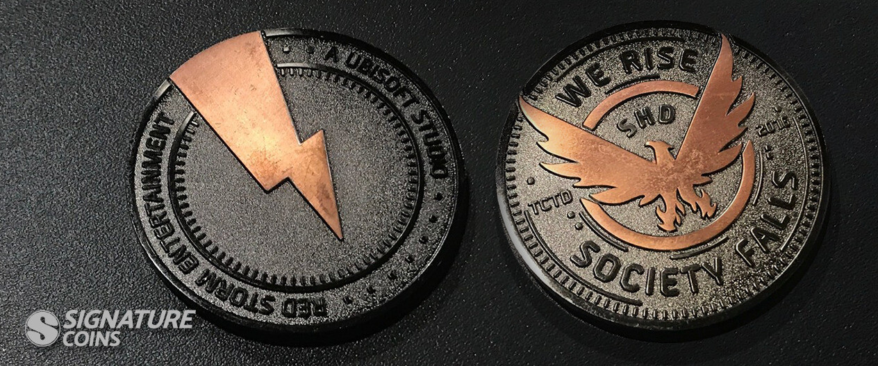 Similar to corporate coins, some development teams mint coins and keep them in-house. Studio directors and team leaders hand out the coins when a project has wrapped, commemorating years of work to create a unique and thrilling experience.