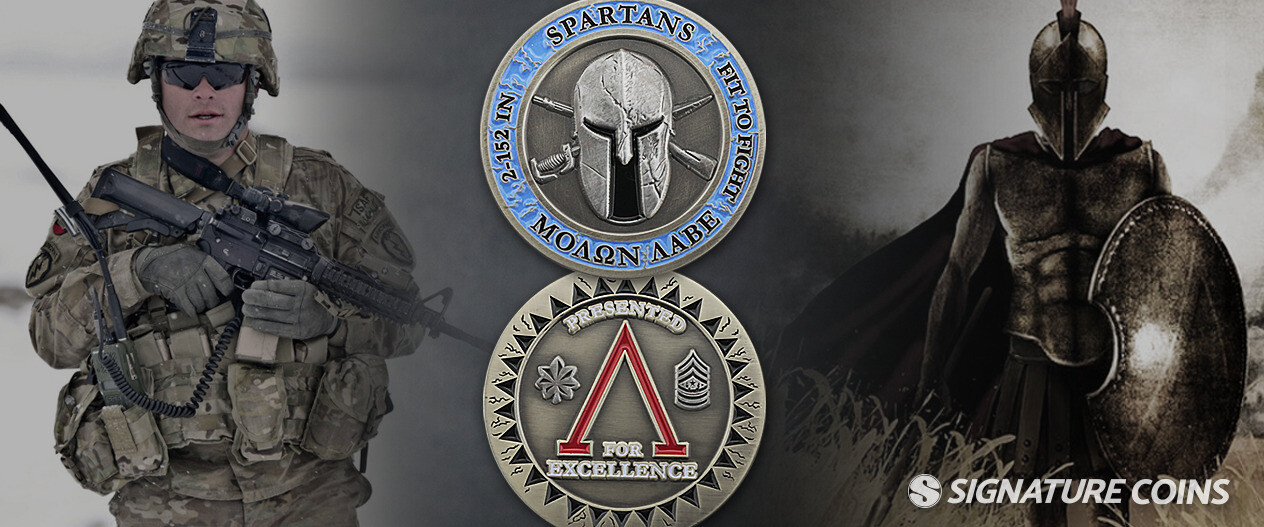 For the most part, the orders we get in for Spartan coins tend to come from the U.S. Army more than any other branch of the Armed Forces. Given the Spartan’s superior land forces, this isn’t surprising. The coin orders we get in often bring the Spartan shield or helmet into their designs.
